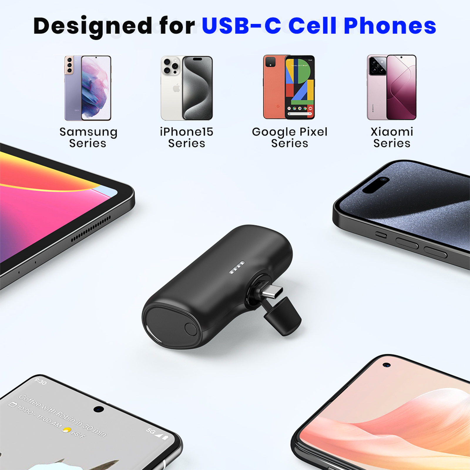 Ultra-Compact USB C Power Bank Built in Connector Battery Pack Compatible with iPhone 15/15 Plus/15 Pro/15 Pro Max, Samsung, Google Pixel, Android Phone etc